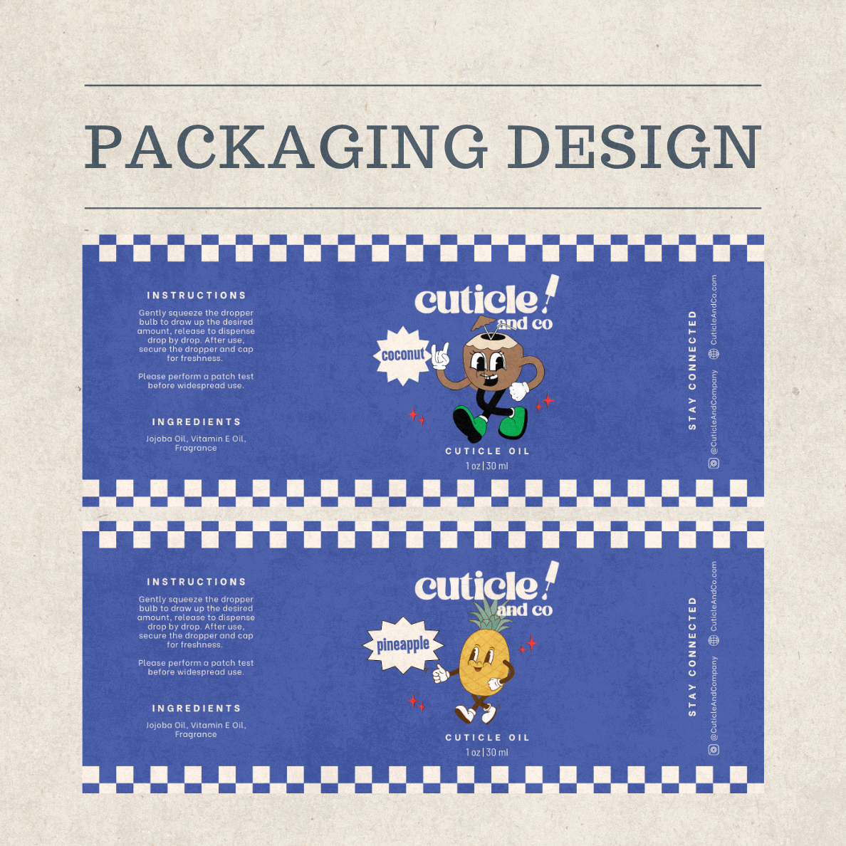 Cuticle & Co got a full brand makeover—from bold new visuals to playful product packaging. I created a bright, high-energy identity using vibrant colors (think cherry red, lime green, bright blue) and custom illustrated characters for each product. We brought those characters to life on the bottle labels and built a fun, scroll-stopping website to match. I also designed social templates and marketing assets that made every part of their presence feel cohesive and full of personality.
